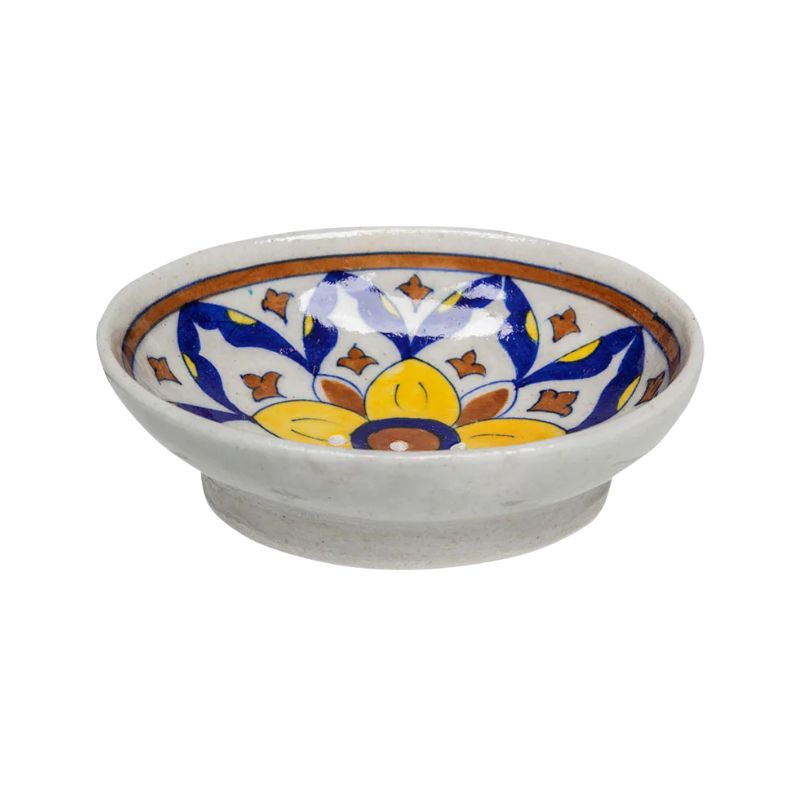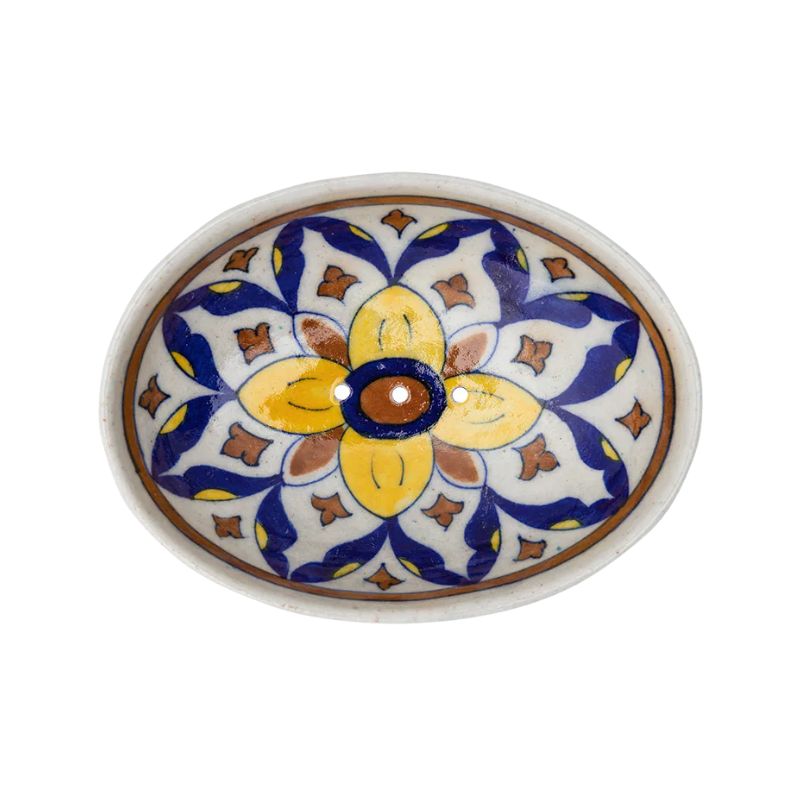 Craquez pour ce porte-savon en céramique Blue Pottery, une pièce artisanale aussi élégante que fonctionnelle. Fabriqué à la main à Jaipur en Inde, chaque modèle est unique grâce à son décor peint à la main. Il apporte une touche bohème et authentique à votre salle de bain tout en s’intégrant parfaitement dans une démarche écoresponsable.