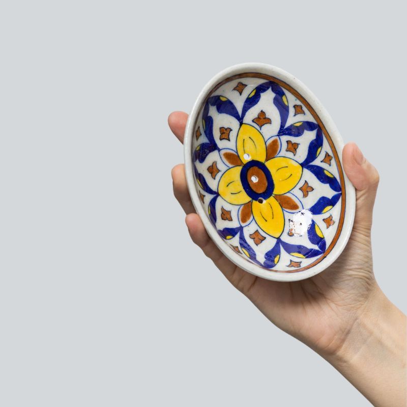 La Blue Pottery est un artisanat traditionnel emblématique de Jaipur, en Inde. Reconnaissable à ses magnifiques motifs floraux et ses teintes bleues caractéristiques, cette technique ancestrale se distingue par l’utilisation d’une pâte non argileuse composée notamment de quartz.