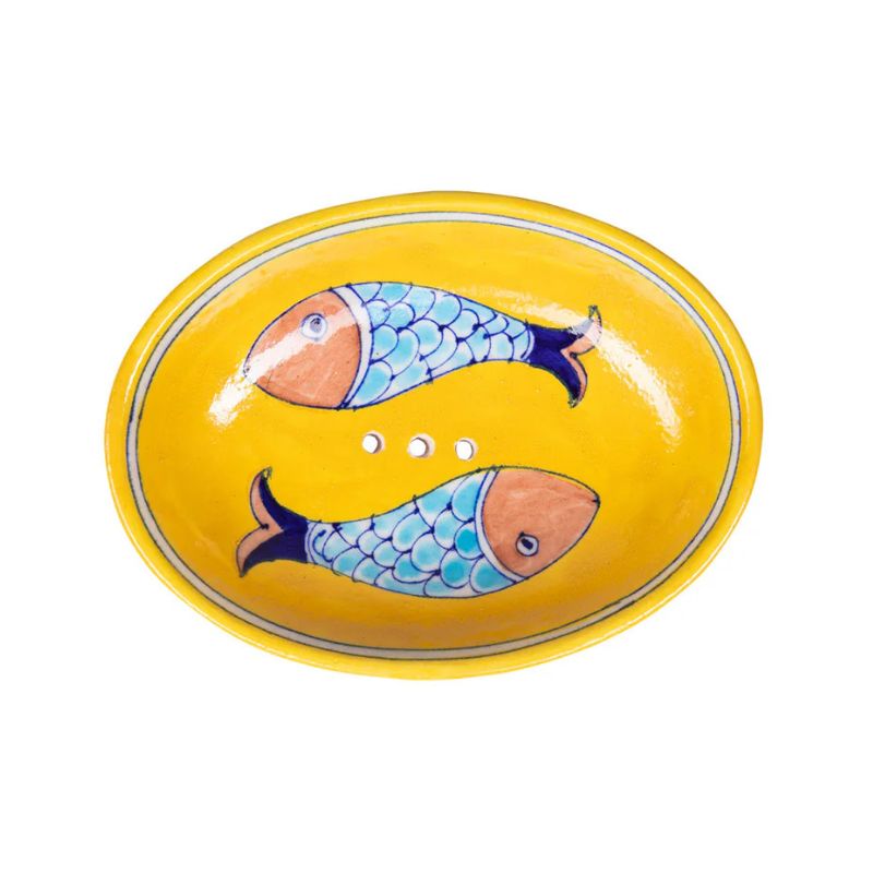 Craquez pour ce porte-savon en céramique Blue Pottery, une pièce artisanale aussi élégante que fonctionnelle. Fabriqué à la main à Jaipur en Inde, chaque modèle est unique grâce à son décor peint à la main. Il apporte une touche bohème et authentique à votre salle de bain tout en s’intégrant parfaitement dans une démarche écoresponsable.