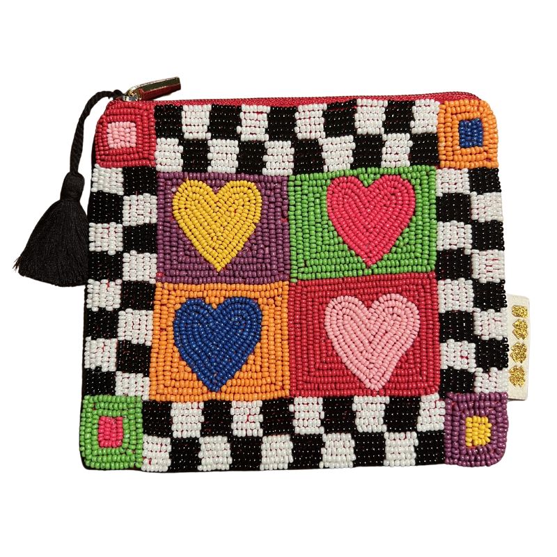 Craquez pour cette trousse perlée entièrement brodée à la main en Inde et molletonnée.